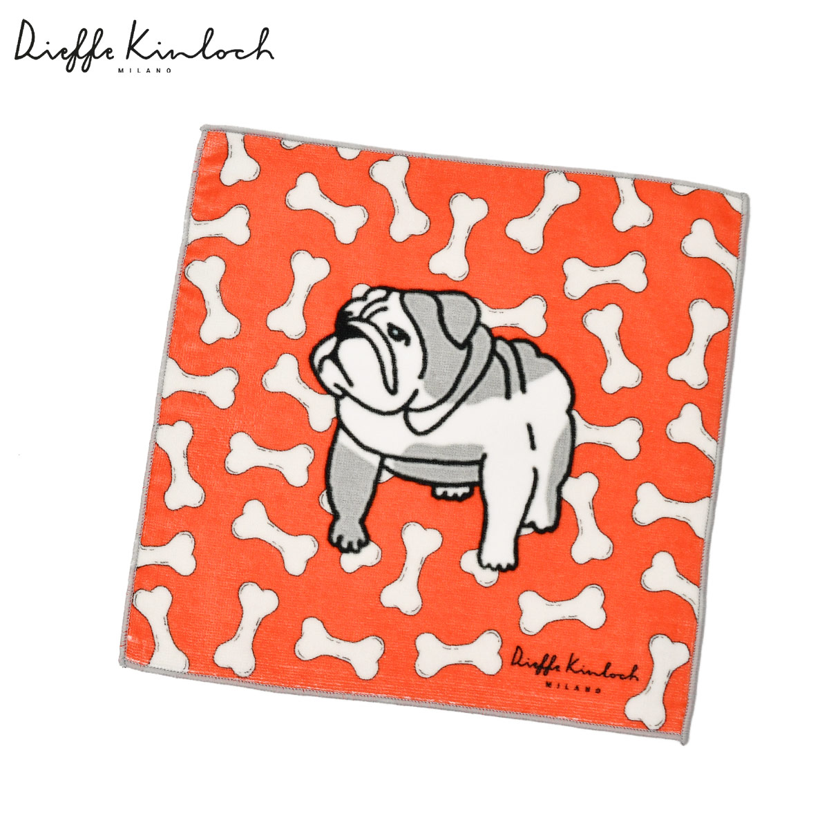 ♣Dieffe Kinloch【ディエッフェ・キンロック】プリントタオルハンカチ BULLDOG コットン オレンジ グレー