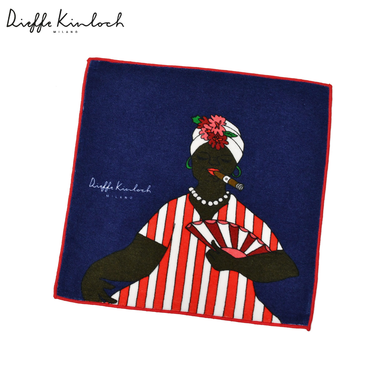 ♣Dieffe Kinloch【ディエッフェ・キンロック】プリントタオルハンカチ CUBA コットン ネイビー レッド