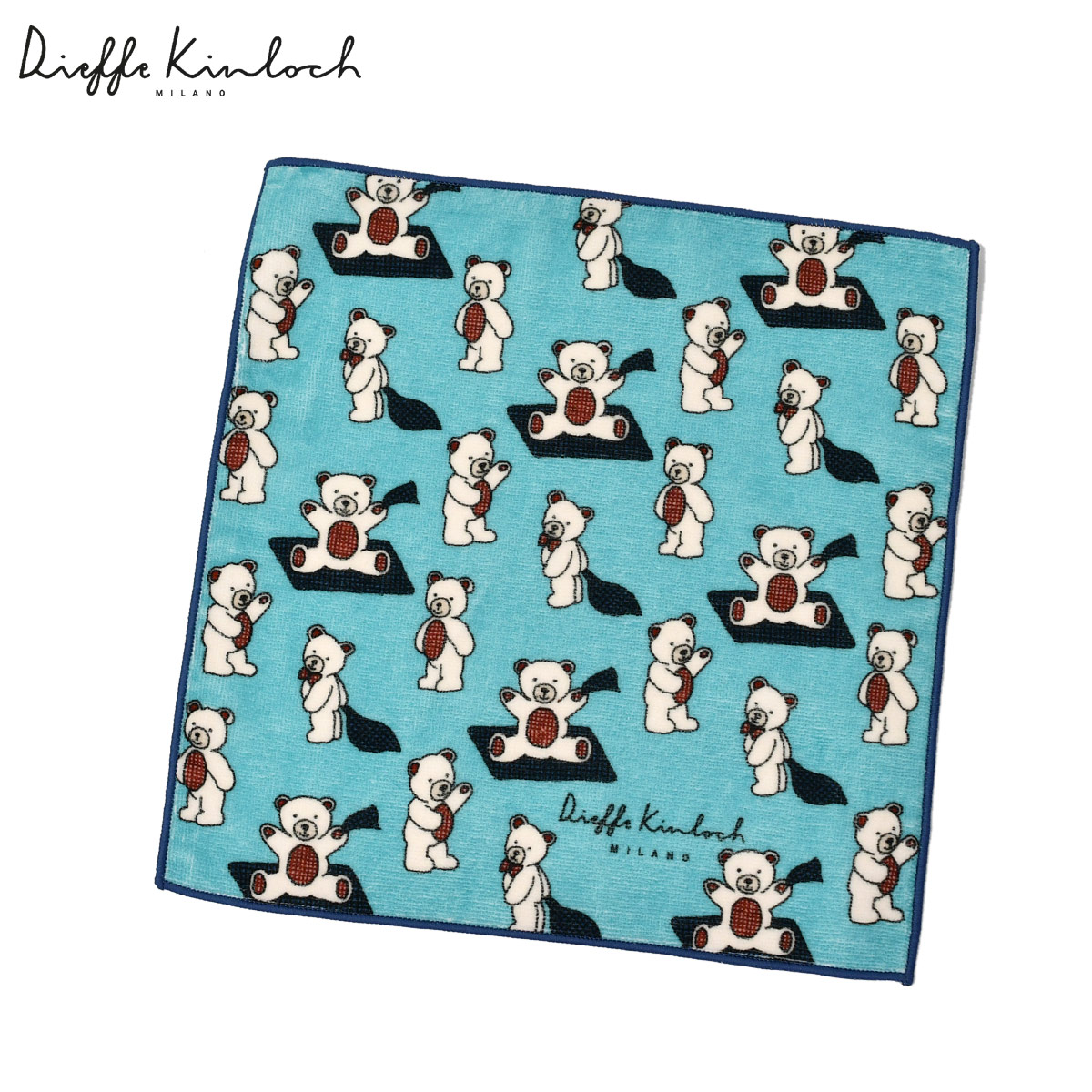 ♣Dieffe Kinloch【ディエッフェ・キンロック】プリントタオルハンカチ ORSO コットン ターコイズ ブルー