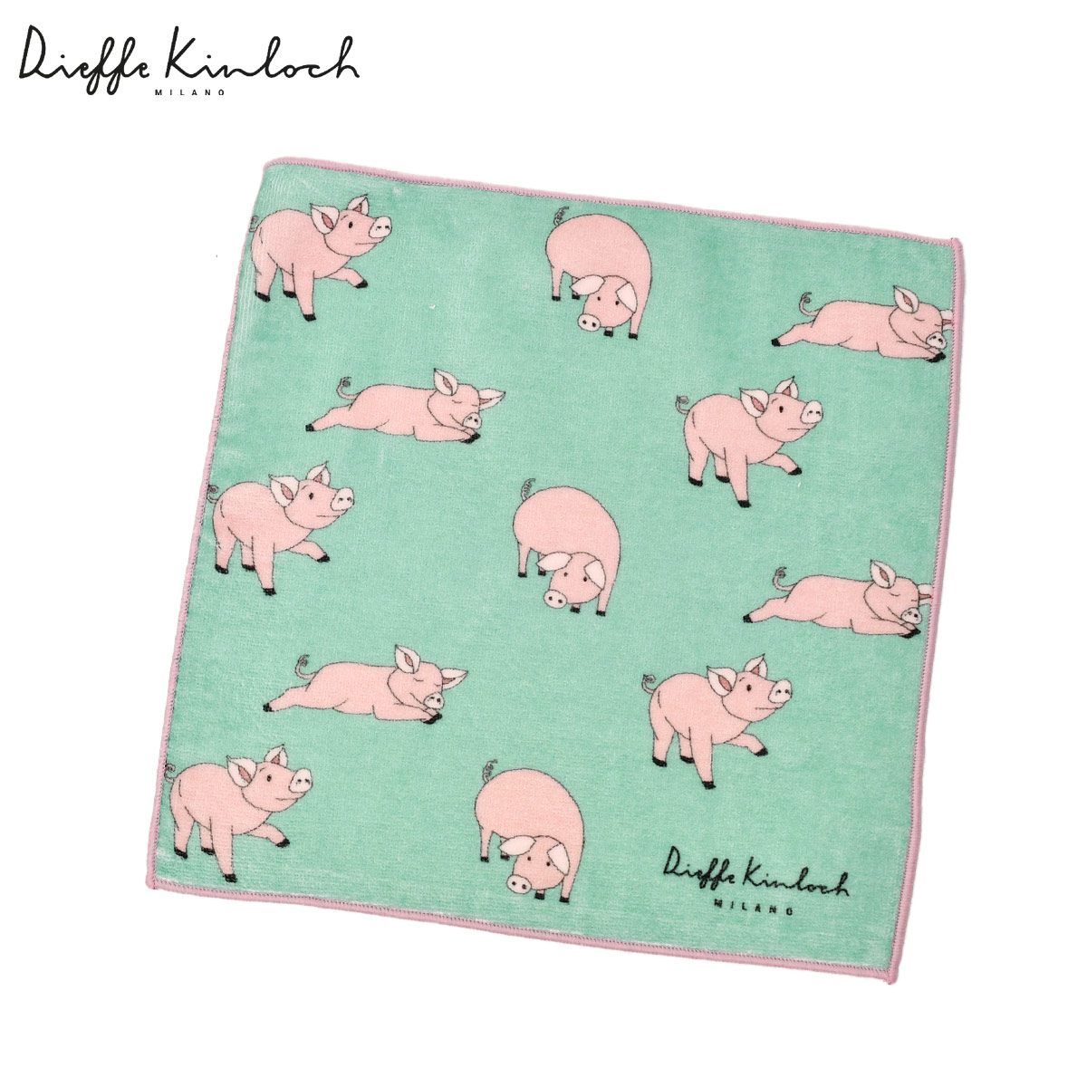 ♣Dieffe Kinloch【ディエッフェ・キンロック】プリントタオルハンカチ PIG コットン ターコイズ ピンク