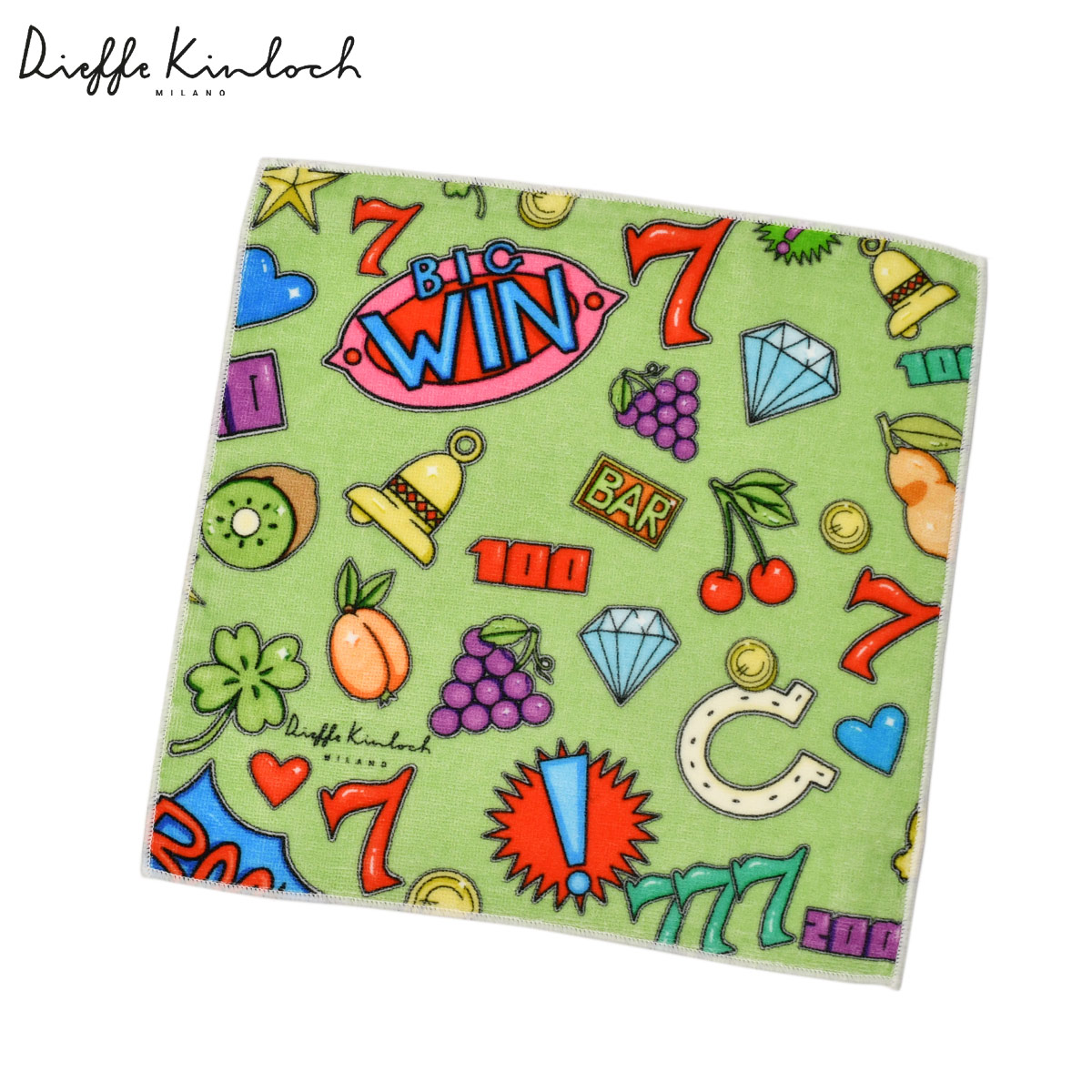 ♣Dieffe Kinloch【ディエッフェ・キンロック】プリントタオルハンカチ SLOT MACHINE コットン グリーン ホワイト