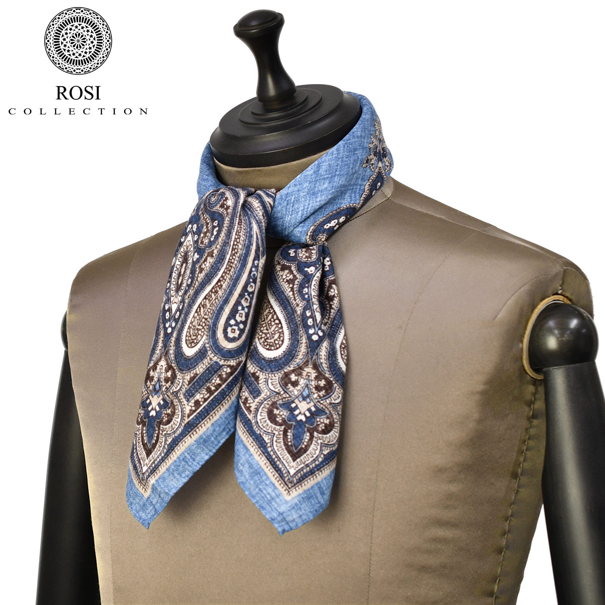 ♣Rosi collection【ロージィ コレクション】ネッカチーフ TOKYO 505 06 コットン シルク ペイズリー ブルー
