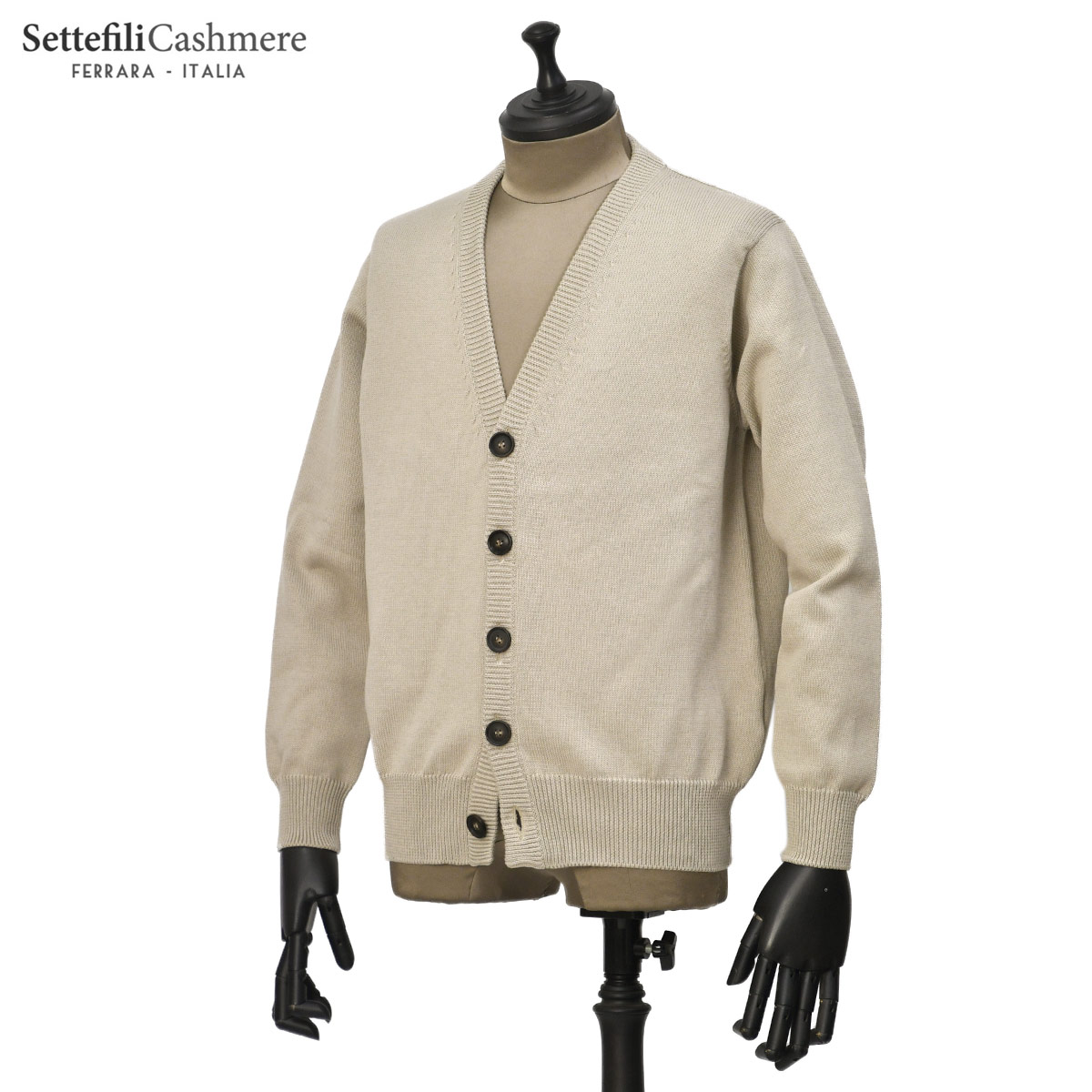 ♣Settefili Cashmere【セッテフィーリ カシミア】Vネックカーディガン 3350VTX 2.KIN11 コットン 8G グレージュ