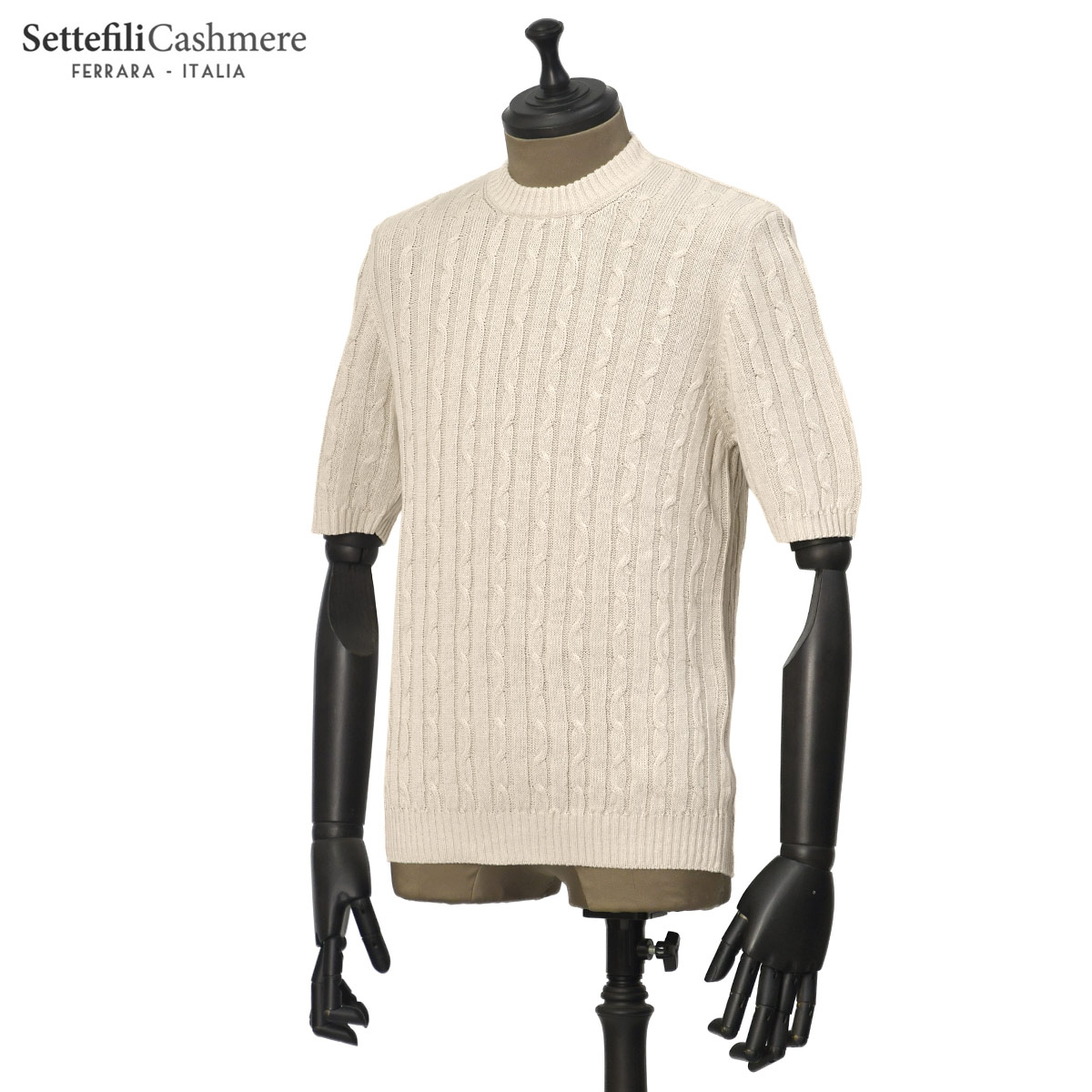 ♣Settefili Cashmere【セッテフィーリ カシミア】ケーブルクルーネックニット 12TR3HM MA.MA23 リネン コットン 8G アイボリー