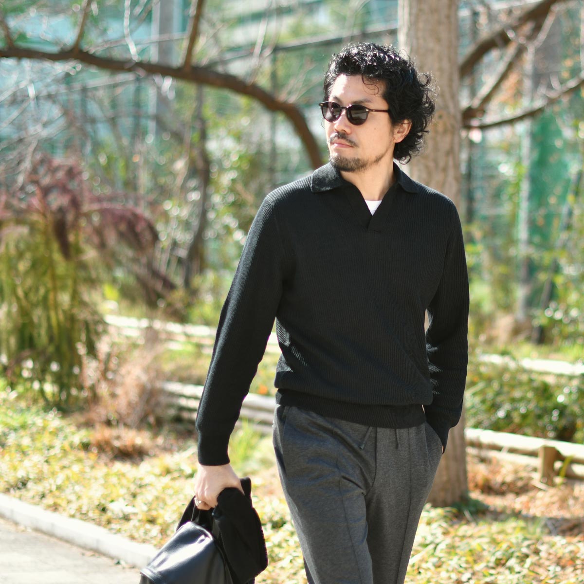 キリっとシャープなブラックカラーの着こなし。