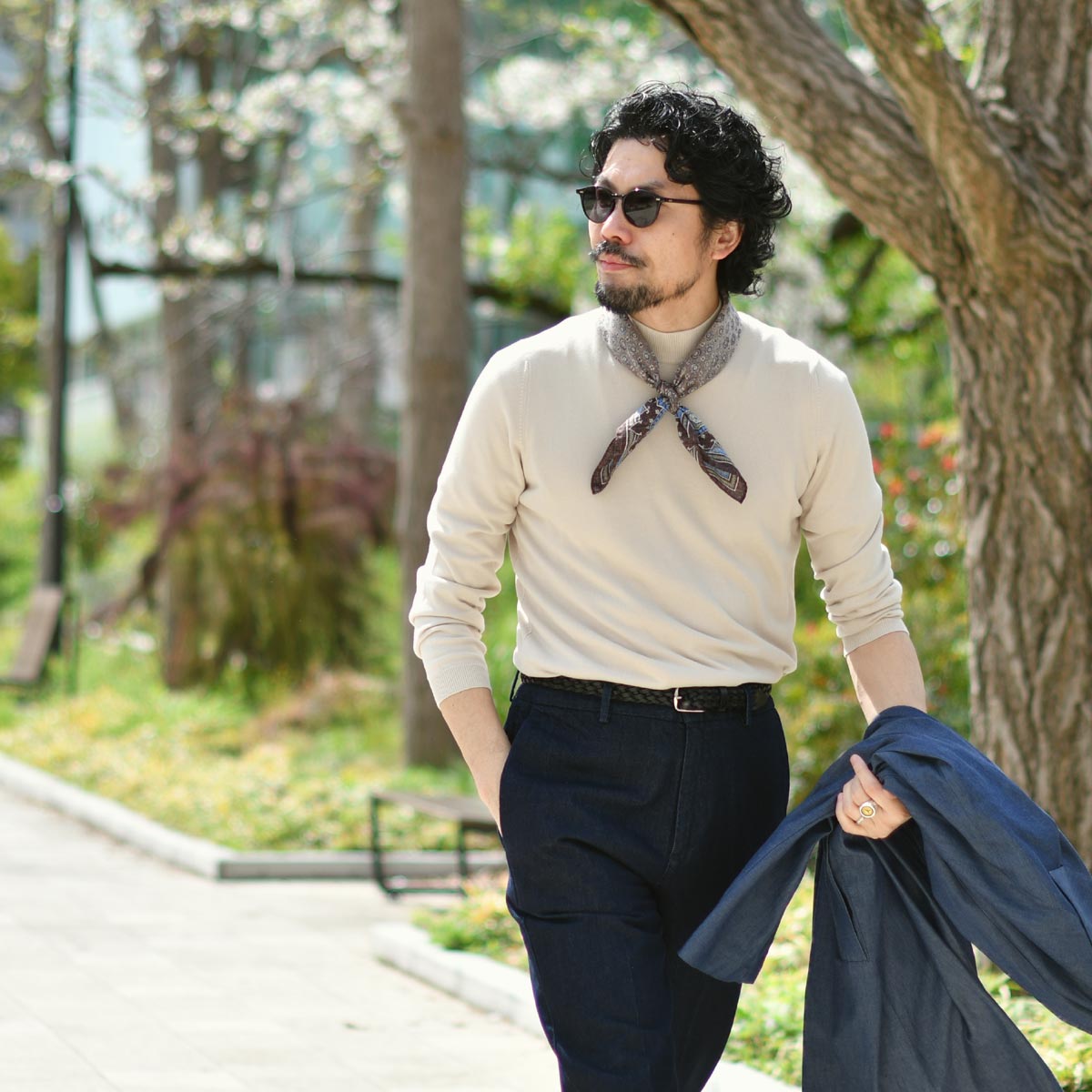 インナーは GRAN SASSO【グランサッソ】の12Gモックネックニット。
