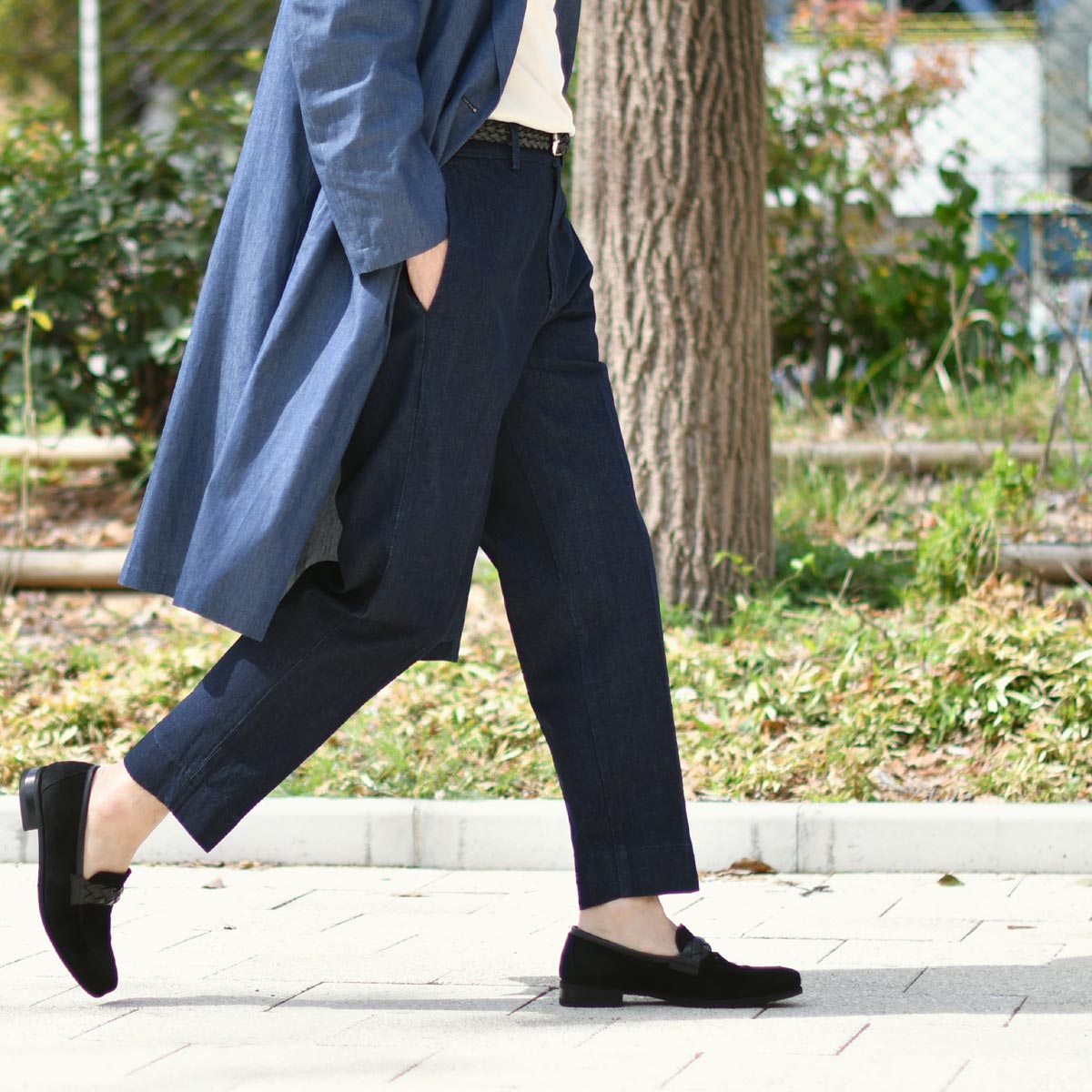 しっかりオンスのあるデニム地を使用しておりインディゴカラーが非常に上品。