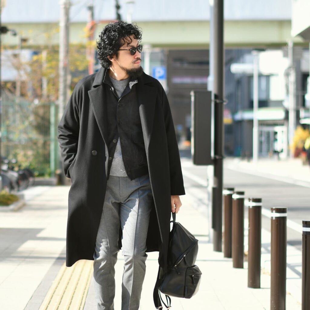 この時期はカーディガンライクに…ウールのコートと素材のギャップが良い変化を生みます。