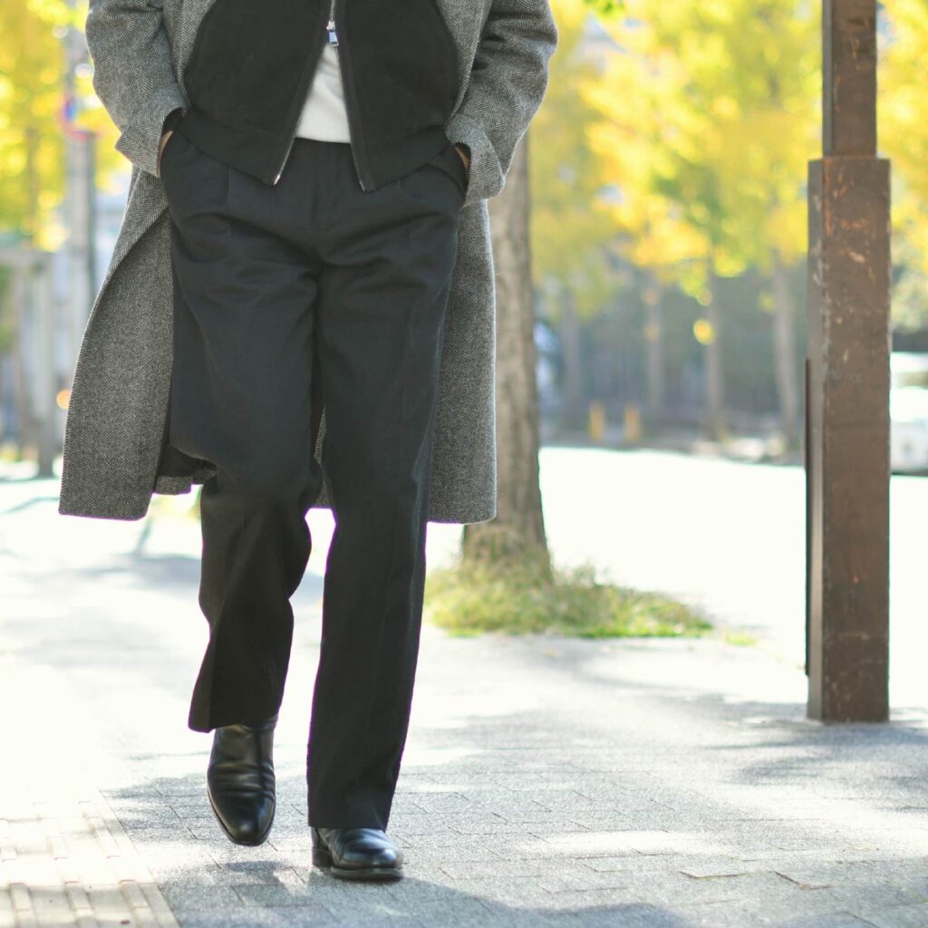 カジュアルなアイテムでもスタイリッシュな印象のコートを
