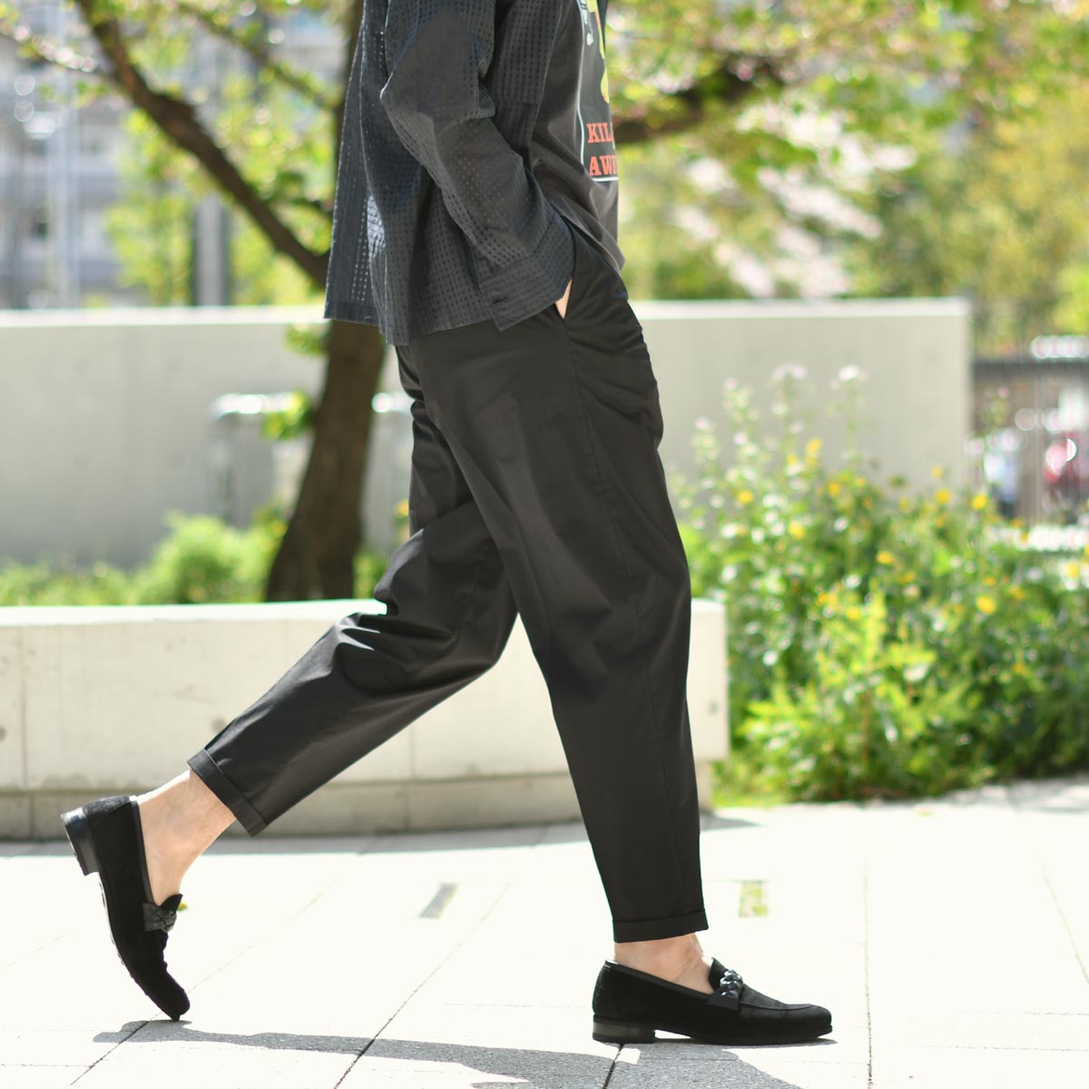 プリーツ入りのやや余裕のある腰回りとテーパードシルエットは今の気分では…!?
