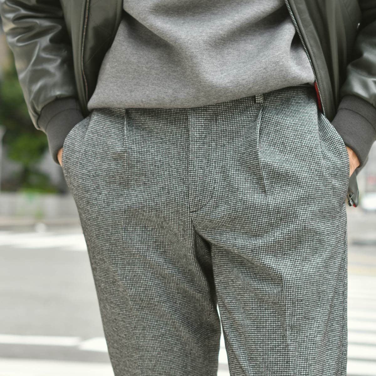 giab's ARCHIVIO【ジャブス アルキヴィオ】giab’s ARCHIVIO【ジャブス アルキヴィオ】ワンプリーツパンツ ヘリンボーンストライプ グレー