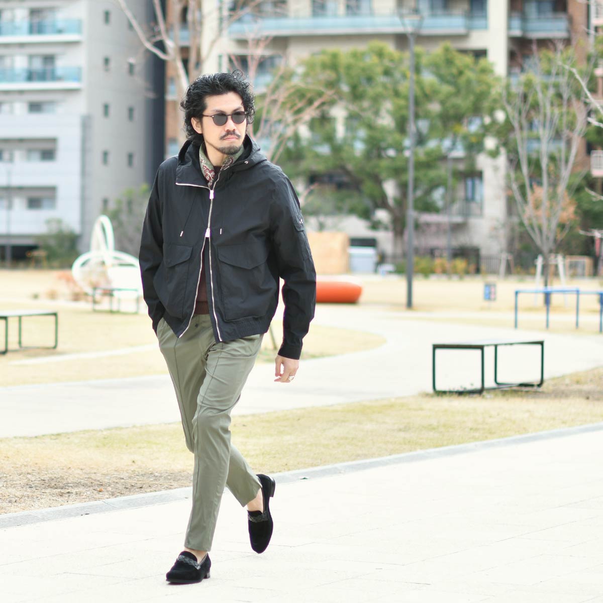 表地 ポリエステル37% 綿37% 麻25% ポリウレタン1%身長182cm 体重72kg サイズ48