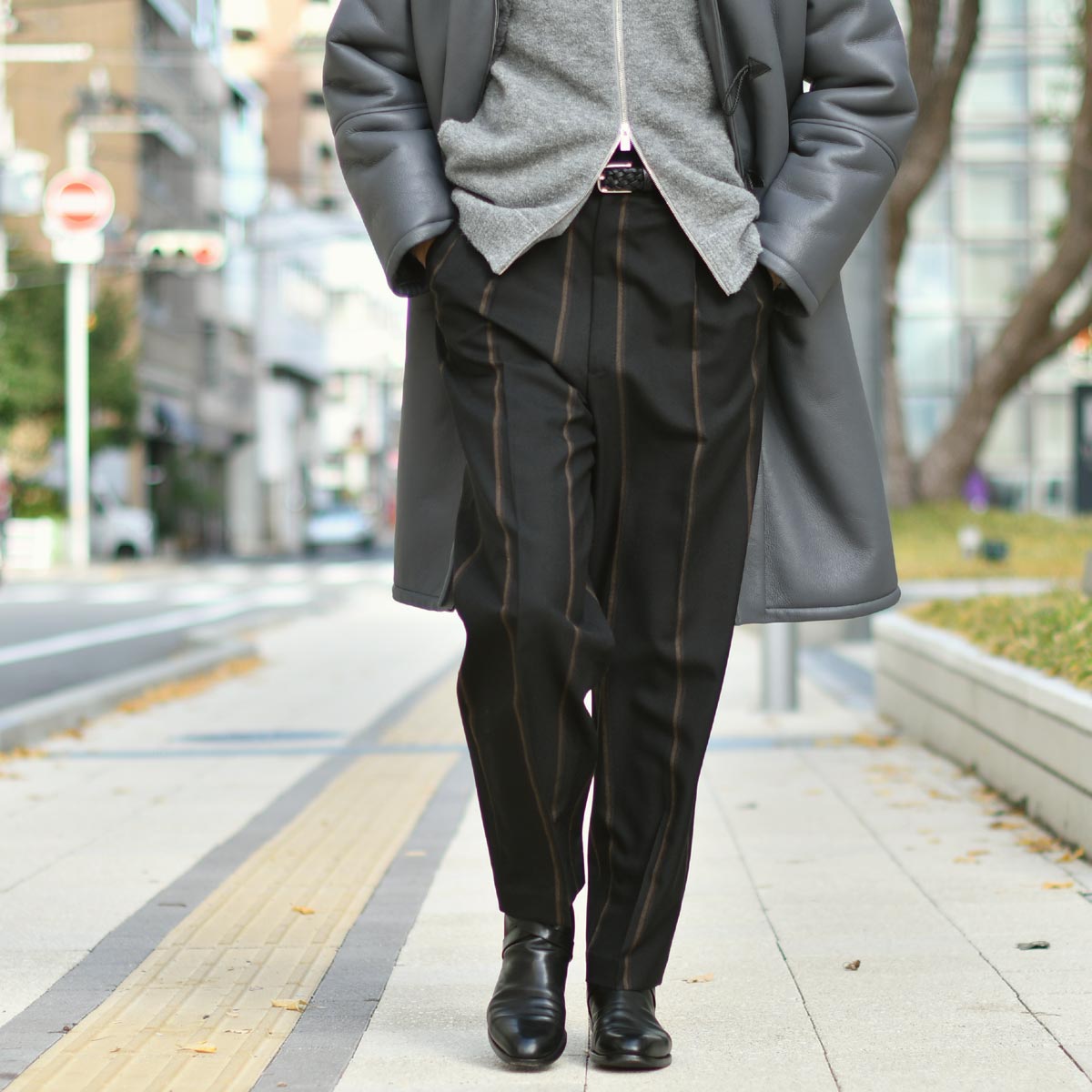ボトムスは Gabriele Pasini【ガブリエレ パジーニ】のブラックワイドシルエットパンツを合わせました。