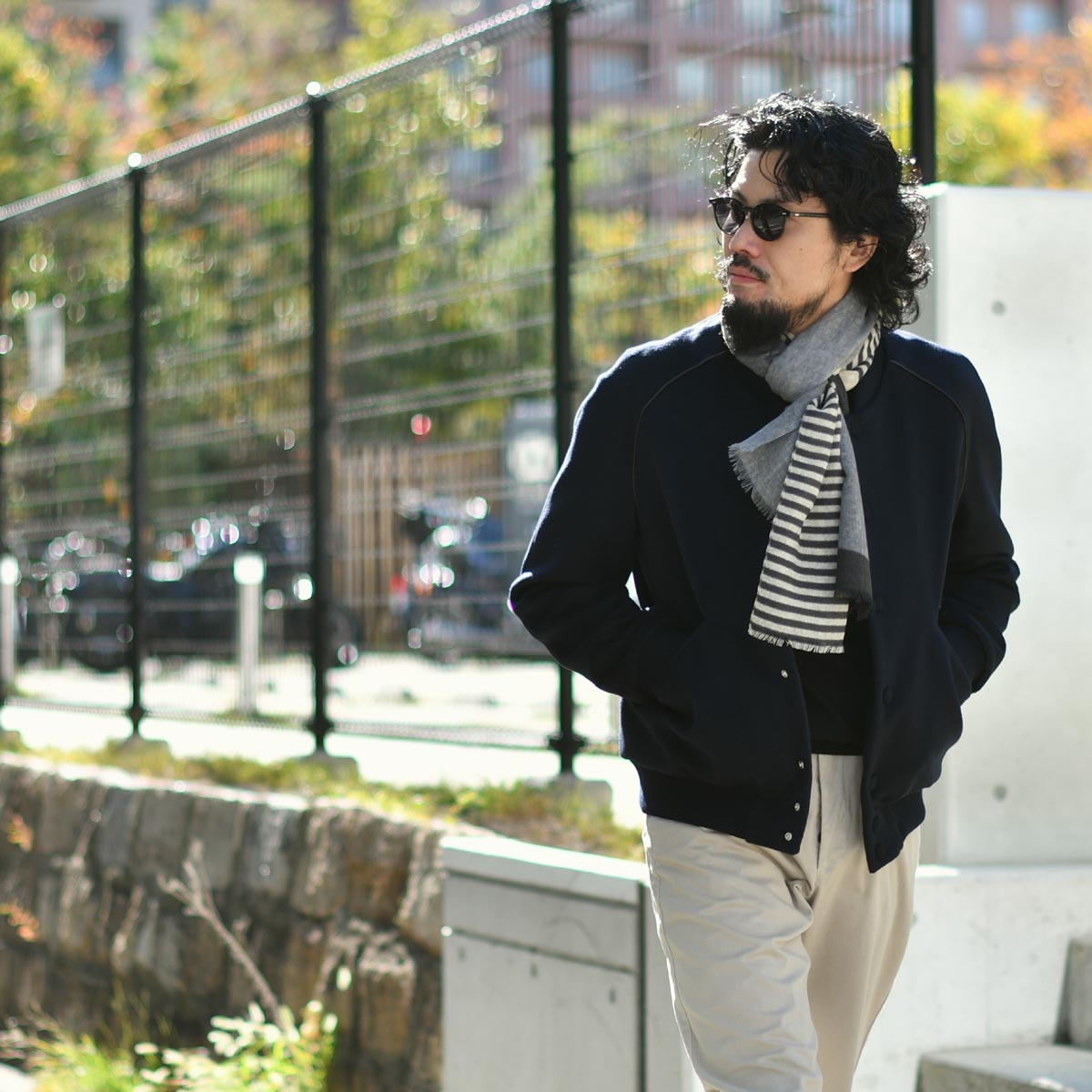 ライトメルトン素材に薄く中綿が入れられた防寒性にも優れたアウター。