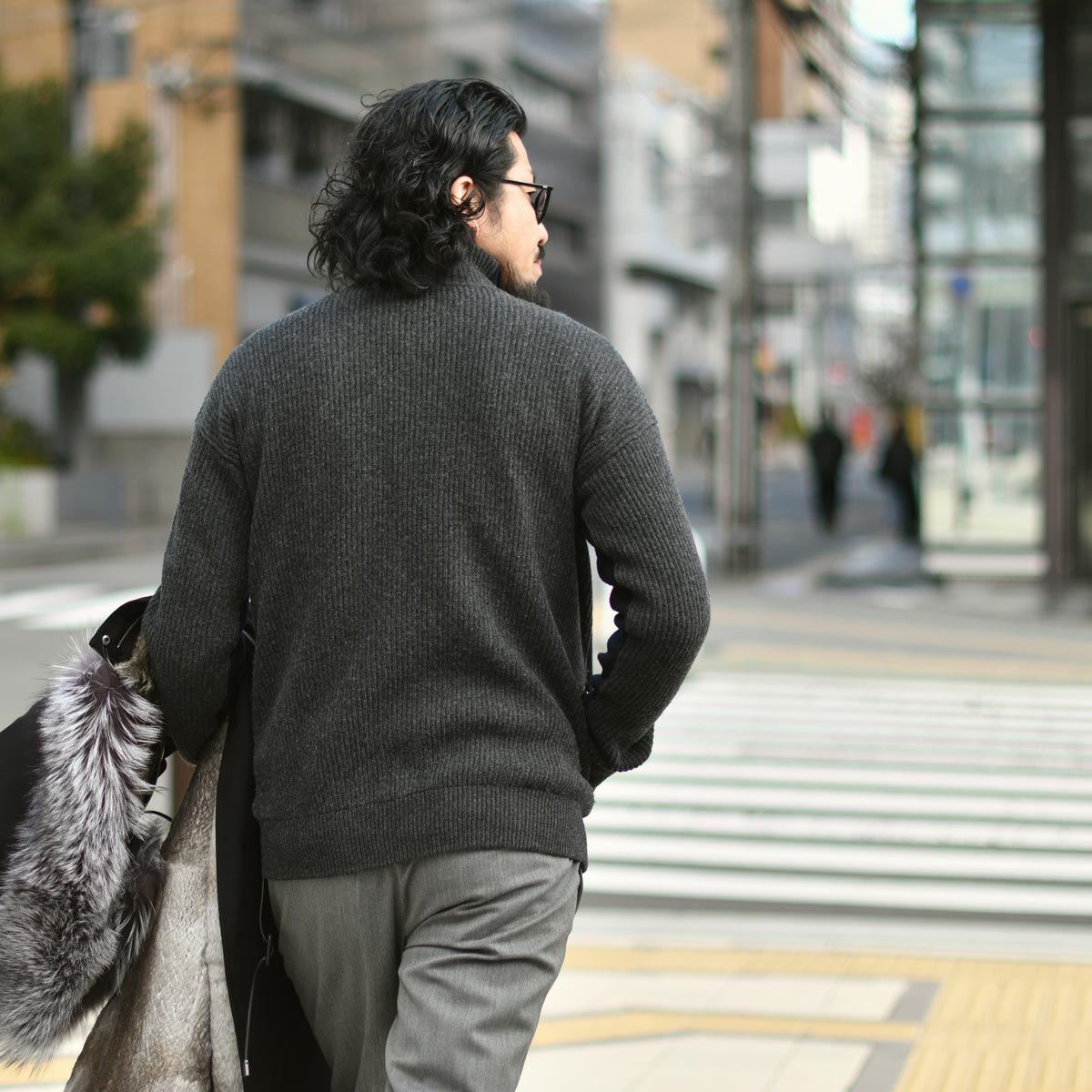 インナーには着たのはroberto collina【ロベルトコリーナ】のジップアップニット。