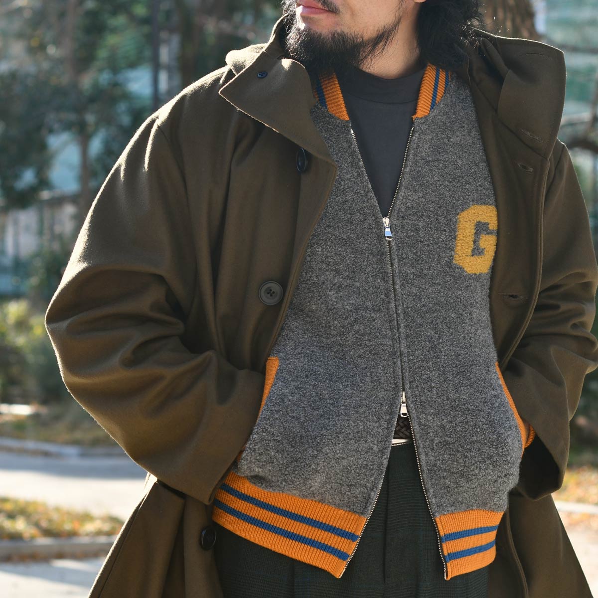 ニットスタジャンのカラーリブが今回の着こなしのアクセントに。
