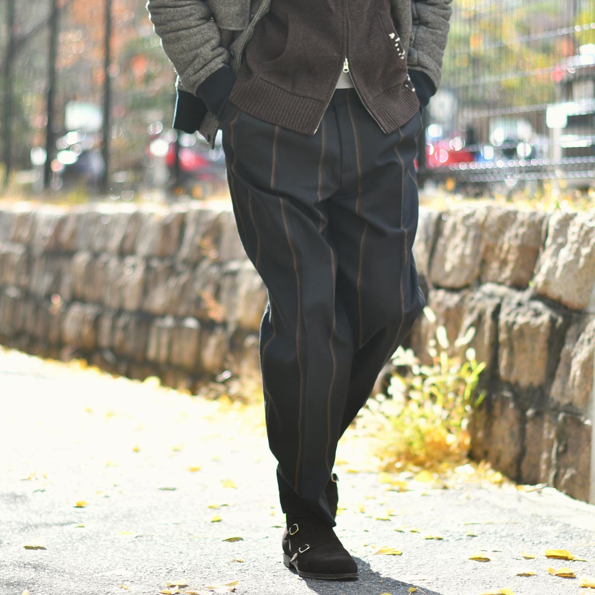 Gabriele Pasini【ガブリエレ パジーニ】ツープリーツワイドパンツ 8008 53523 1 ウール ストライプ ブラック
