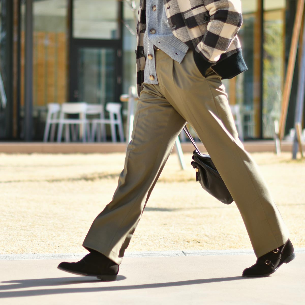 絶妙な塩梅のトップスには程よいシルエットのパンツが好相性。