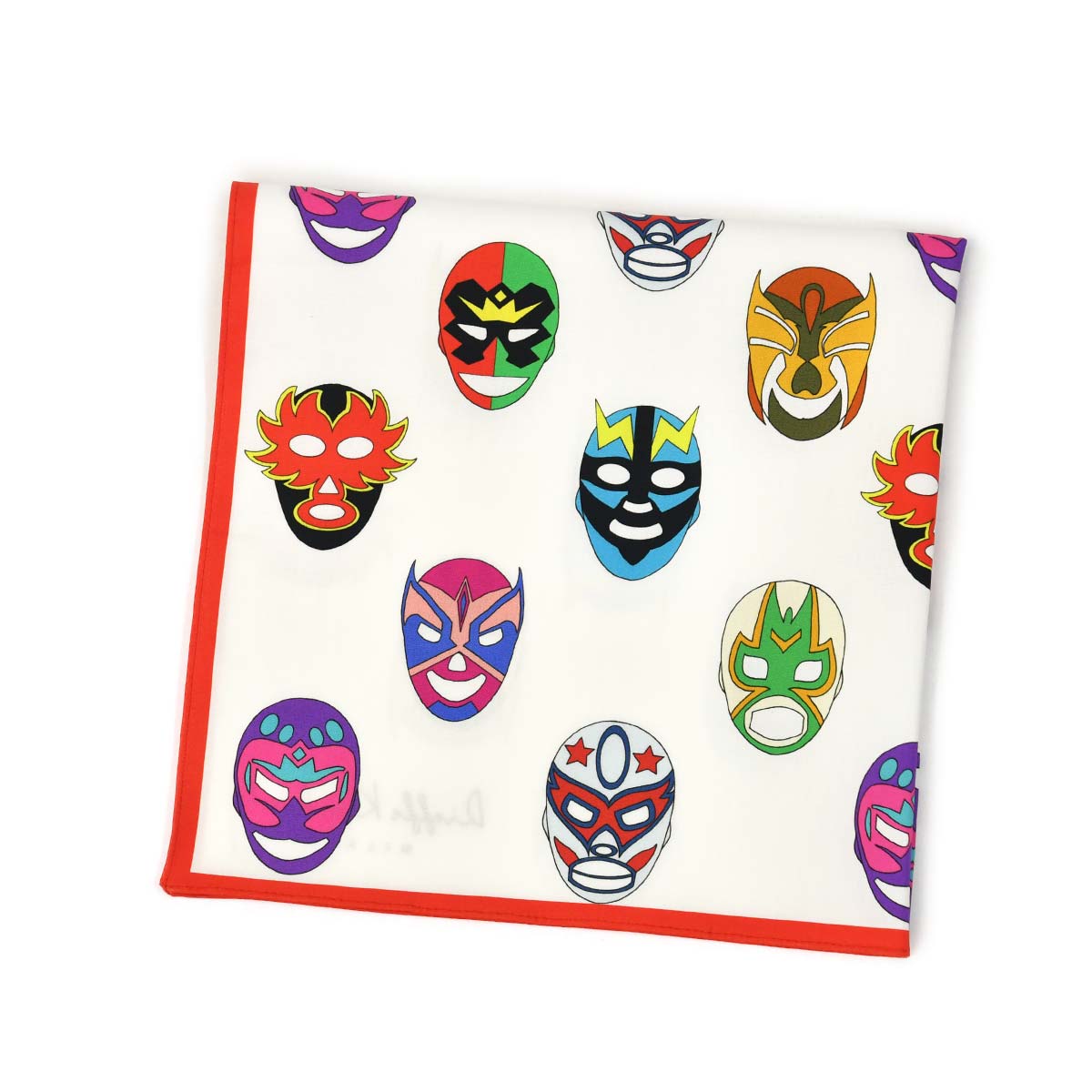 Kinloch【キンロック】プリントハンカチ LUCHA LIBRE マスク コットン ホワイト レッド